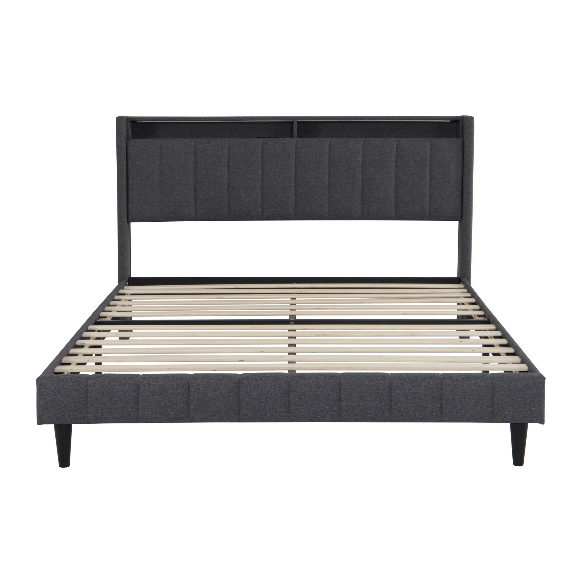 WoodenAura Polsterbett 140×200 cm, Doppelbett mit Stauraum-Kopfteil und Lattenrost, Jugendbett mit LED-Licht und USB-Anschluss