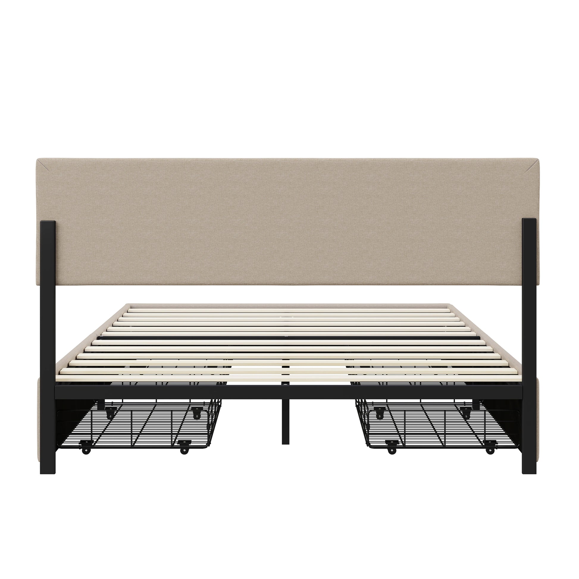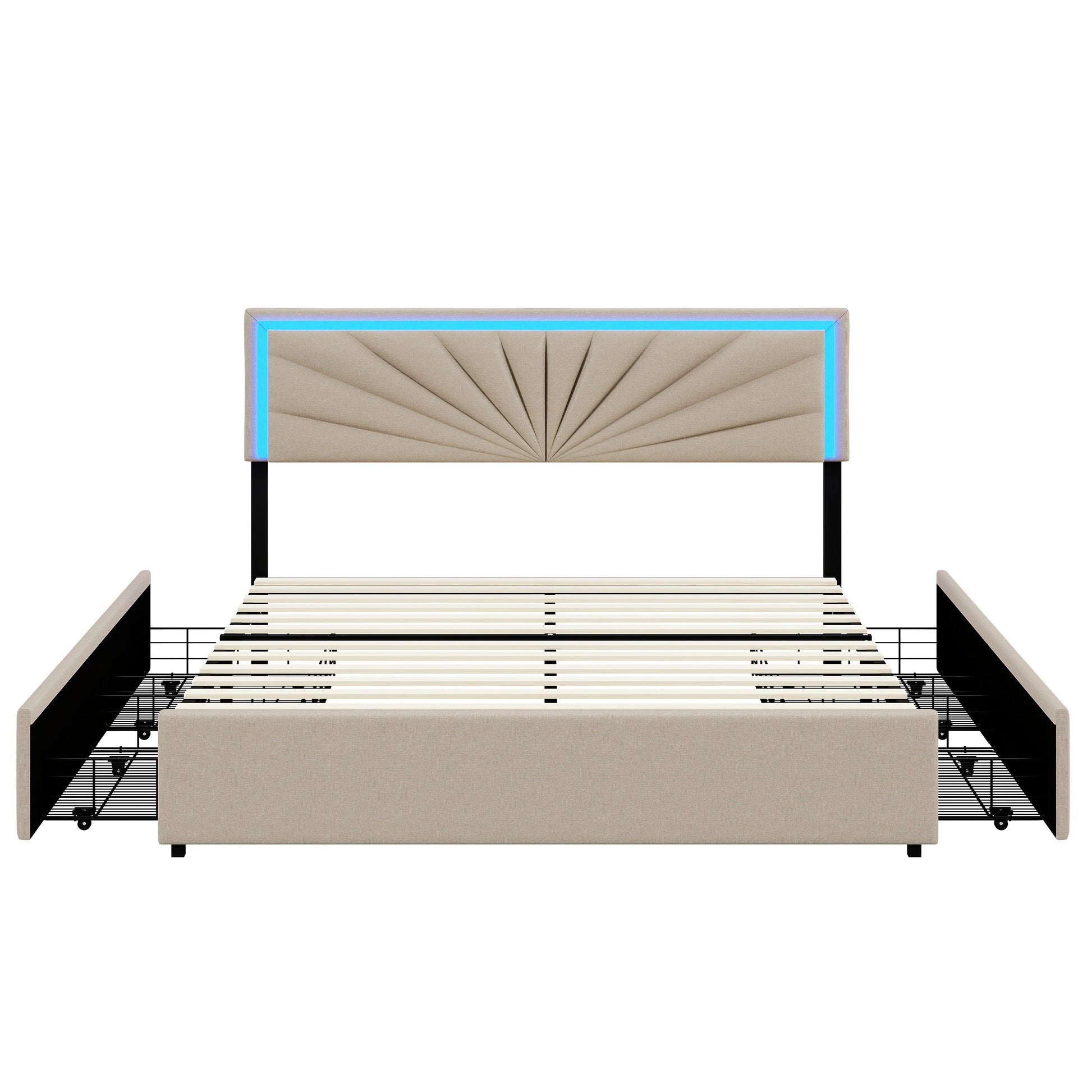 WoodenAura Polsterbett 140x200 cm mit LED-Beleuchtung,Doppelbett mit 4 Schubladen, Höhenverstellbarem Kopfteil und Holzgestell