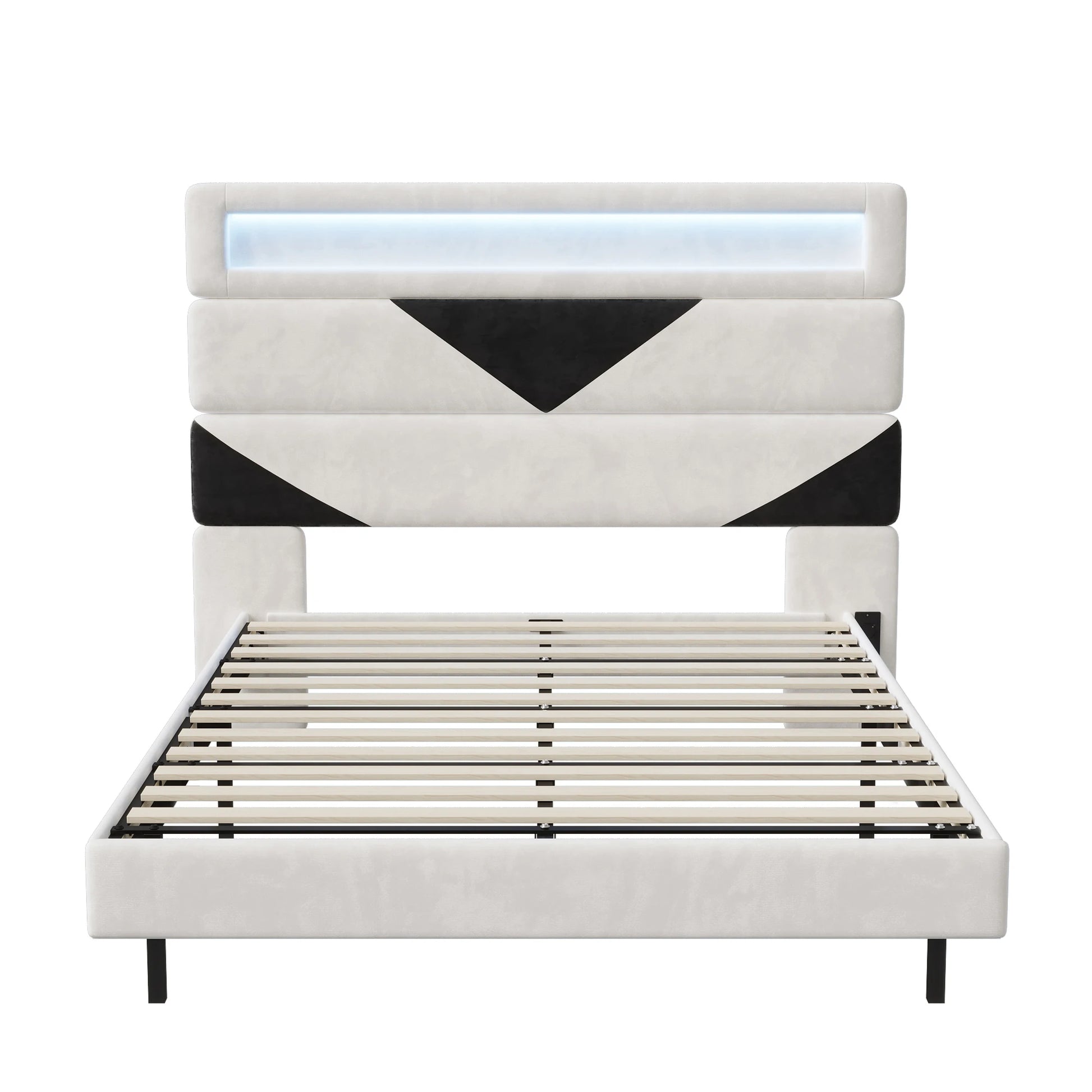 WoodenAura Polsterbett 160x200cm mit LED-Beleuchtung, Bettrahmen mit Lattenrost, verstellbares Kopfteil, Jugendbett