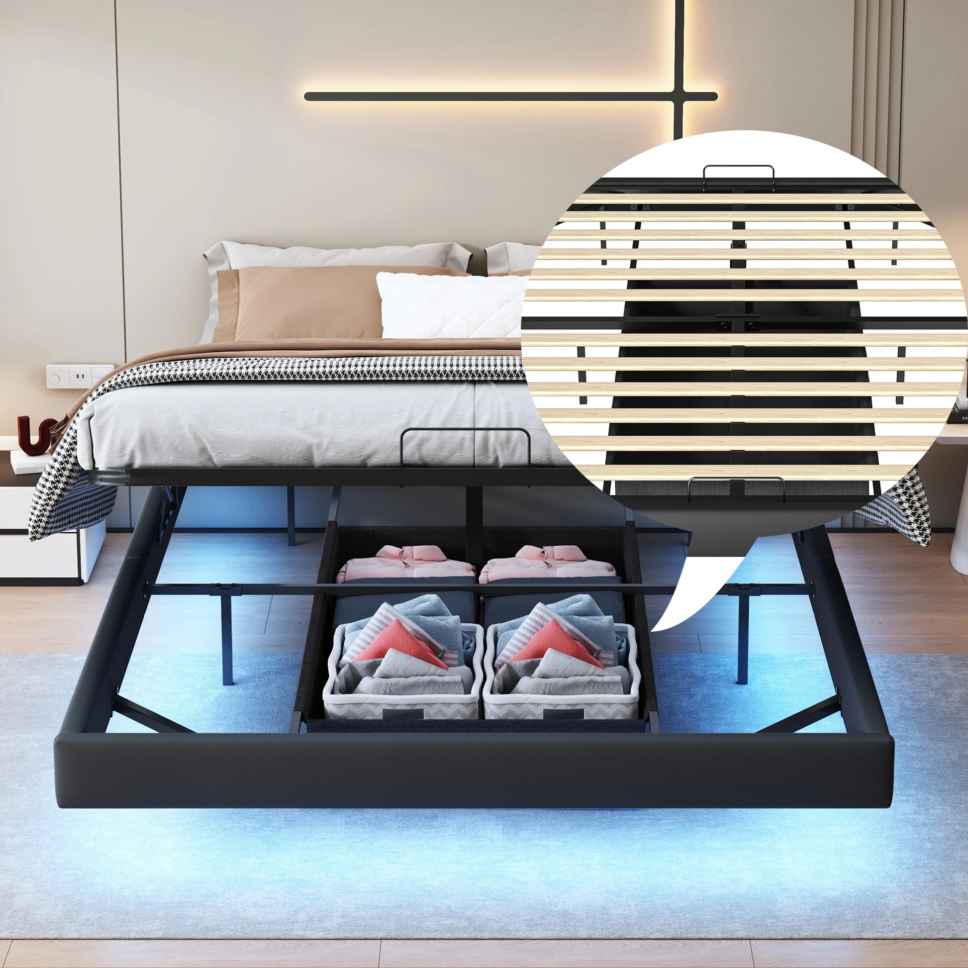 WoodenAura Polsterbett Bettgestell Doppelbettgestell, Geräusche leicht aufzubauen. Kunstleder-Bettrahmen 160 x 200 cm modernes