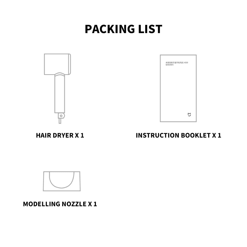 XIAOMI MIJIA Mi Ionic Hair Dryer H300 Quick Dry Negative Ion Hair Care Professional For Home 1600W Electric Hair Dryers Diffuser
