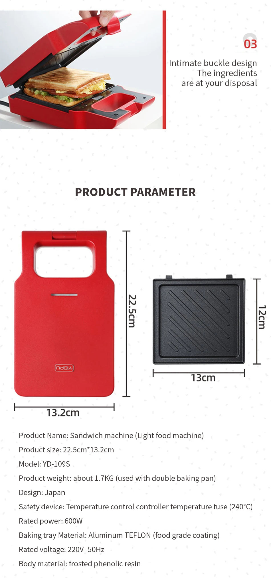 YIDPU Sandwich New 2025 breakfast machine divine tool household bread machine light food machine waffle multifunctional toaster