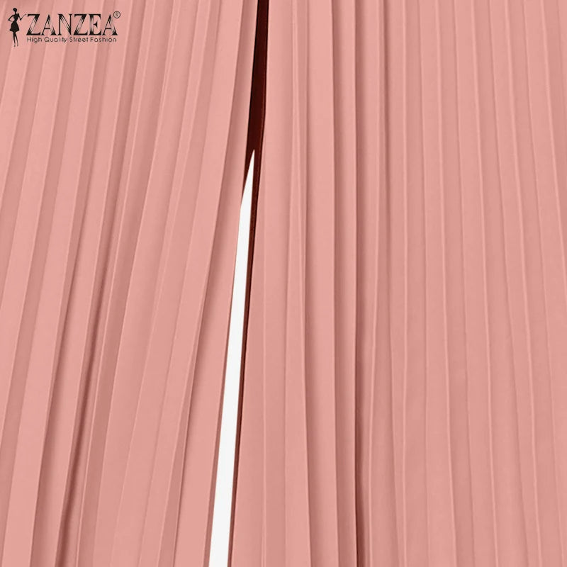 ZANZEA Muslim Women 2 Pieces Pant Sets Hijabis Casual Asymmetric Hem Long Sleeve Blouses & Pleated Pants 2pcs Suits Outfits