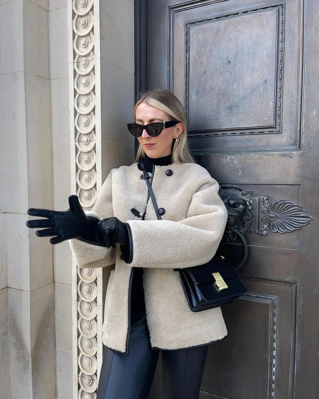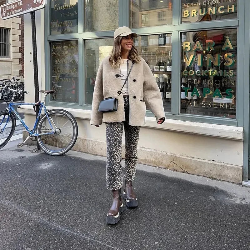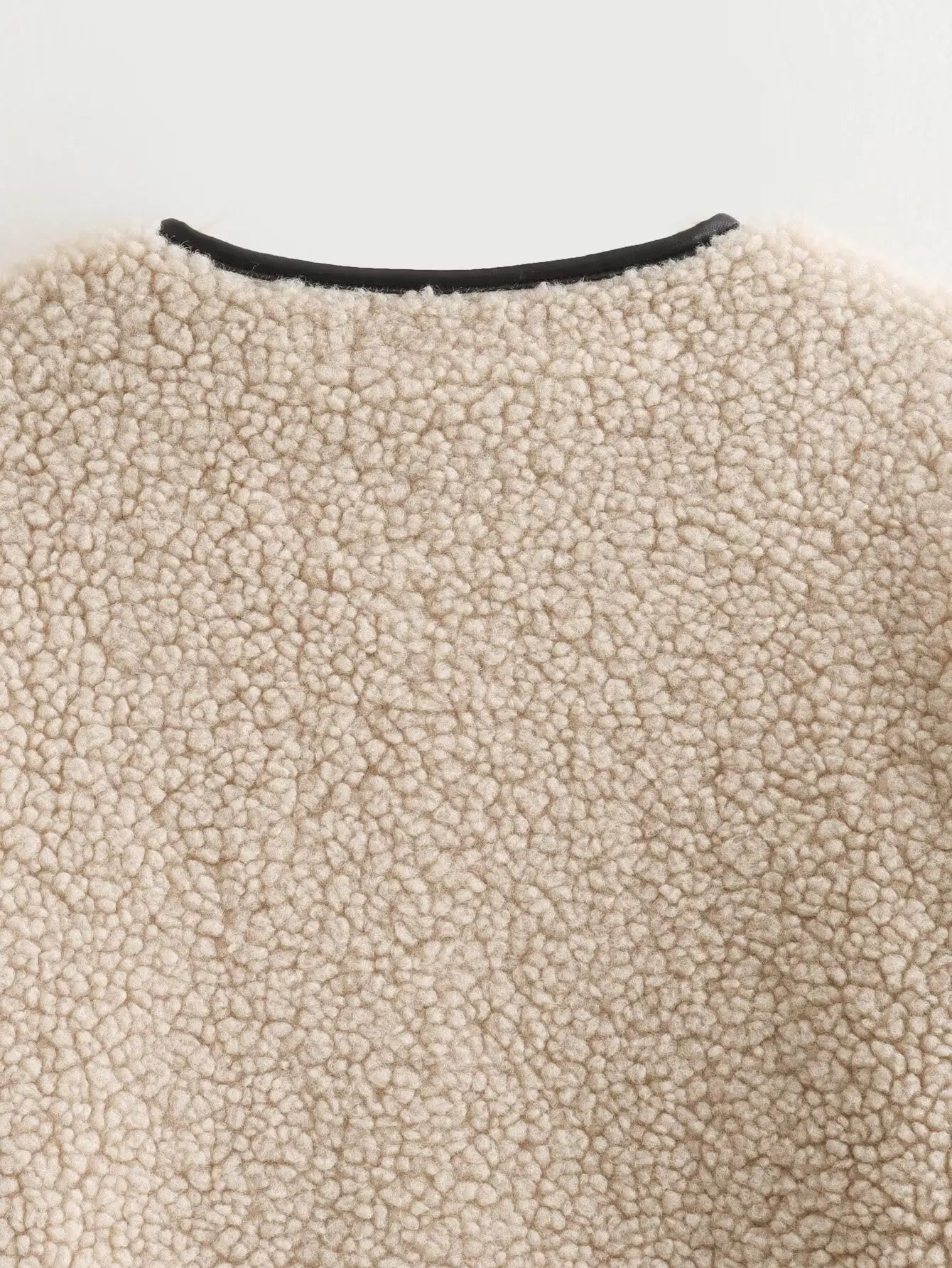 ZBZA Women's Faux Wool Jacket Loose Retro O-neck Single Breasted Long Sleeve Double Pocket Casual Overcoat Fall Winter Chic Coat